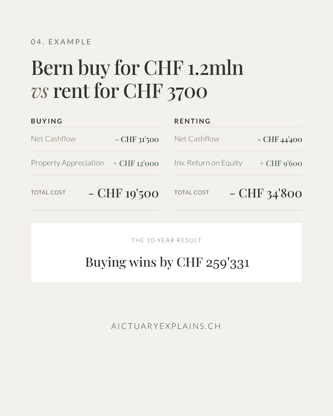 While nobody can perfectly time the market, waiting for a significant price drop in Switzerland is a risky strategy. Historically, Swiss property prices are extremely resilient due to low vacancy rates and limited supply. Often, the money you “save” by waiting for a price drop is offset by the property prices appreciation in the meantime. If you have a specific scenario in mind, feel free to ask AIctuary. I’ve built this AI assistant to provide precise answers based on my actuarial frameworks and the latest Swiss financial regulations.
